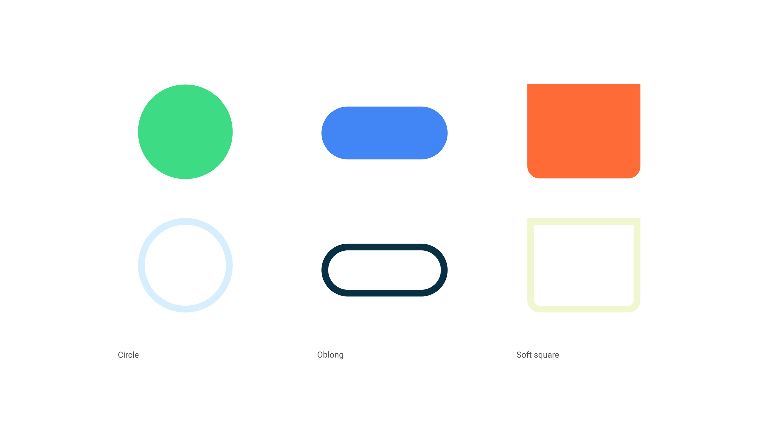 Just like our symbol and word-mark, our colors are a mix of where Android has come from and where we want to go. And the identity revolves around a set of expanding, roving button-like shapes in both stroked and filled styles that even though they are fairly basic they expand quite nicely into a full visual language that feels playful and dynamic.